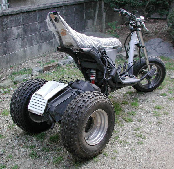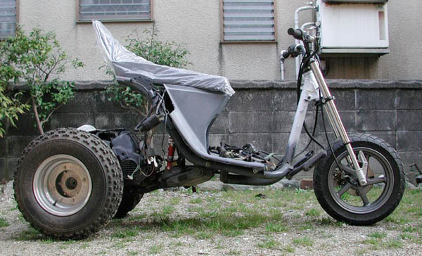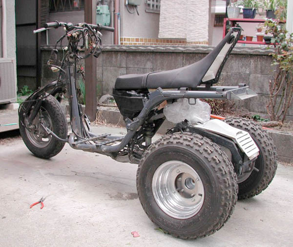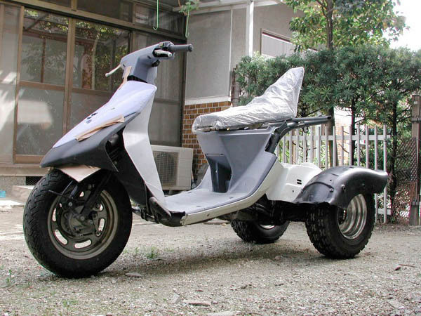 ジャイロXのカスタムで色んな智恵(?)を付けてしまって、キャノピーに対する見方もかなり変わってきました。相変わらず、「スカチューン」には抵抗があるのですが、カウルをフル装備したものから、必要最小限のフェンダー等を装備したデザインに方向修正する事にしました。そこにはジャイロXでディスクブレーキ化を達成したことにより、キャノピーもディスクブレーキだぁ〜〜〜!との決意が生まれた事にもよります。