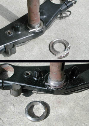 他社品の為、装着には多難が予想されましたが、「倒立サス」に惹かれて頑張る事にしました。実は写真のフォークの前に別のストマジフォークをヤフオクで手に入れていて、これはなんとか入りそうだ……との感触を得ていました。素人の私では心もとなかったのですが、ネット仲間のアドバイス等頂き、勝算アリと踏んで、写真のフォークを改めて購入(ヤフオクです)する事にしたのです。