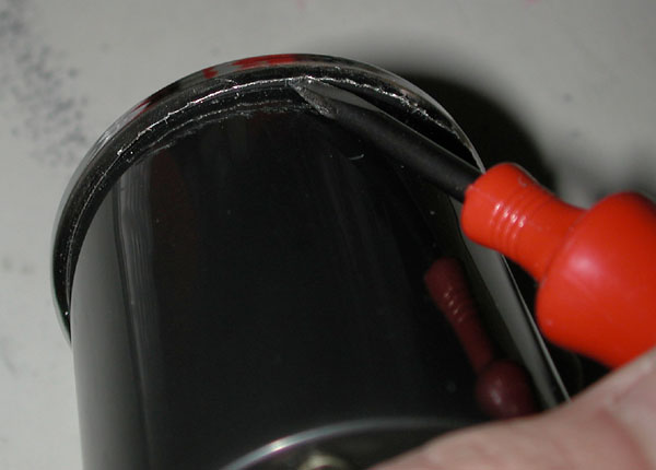 リングのかしめをドライバーでこじ開けて行きます。ボディーに傷がつきますがどうせカバーで隠れますので気にしなくても良いです。