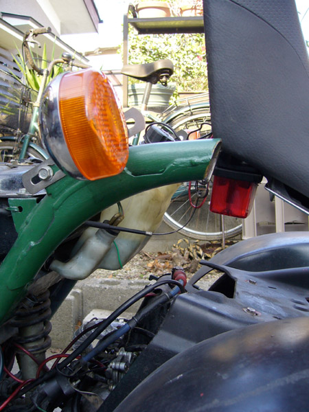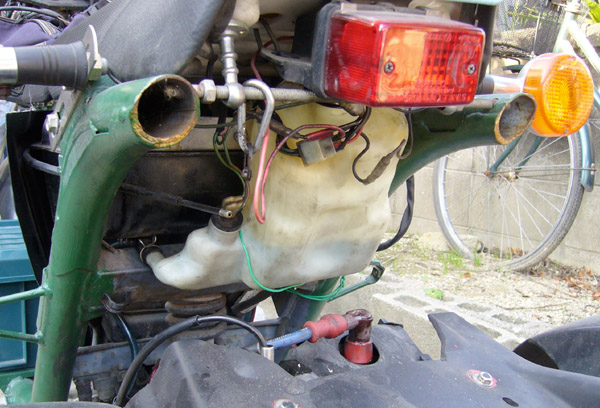 ジャイロXのタンクを改造して使っていたのですが、改造部分からオイル漏れがしておりエンジン部にしたたり落ちていました。