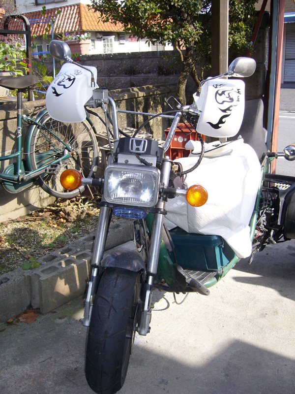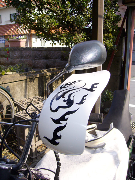 白が目立つんで何かステッカーでも貼ろうかな?LEDのウィンカーを付けても面白いかも知れません。