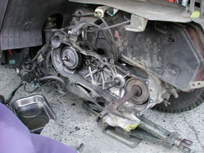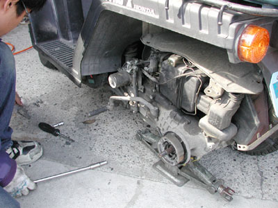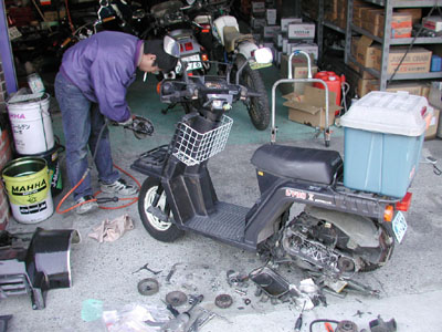 作業しているのは私では無く、ホンダ商会のウエダさんです♪本当に丁寧に作業してくれました。トータルで4時間は掛ったのでは無いでしょうか?ここまできたからついでに………が重なって、申し訳無い程の作業をして頂きました。