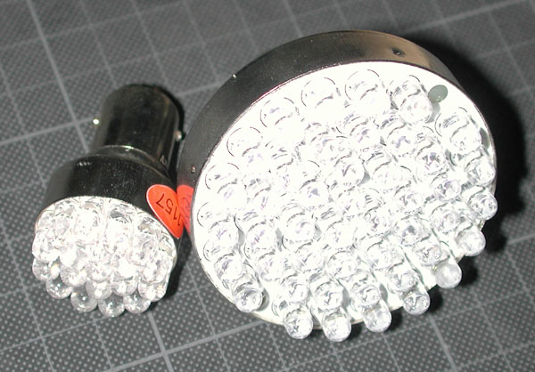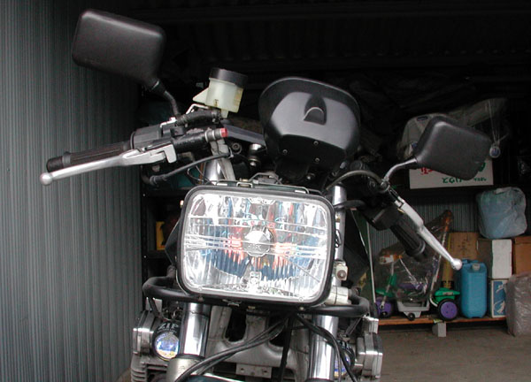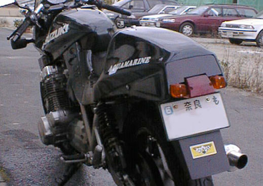 以前の小型ウィンカーでも満足していたのですが、ある日KATANAカスタムの本を見ていたら、流線形の埋込みウィンカーを発見しました。「お!コレはカッコ良いゾ♪」解説を読むとスクーター系からの流用で車種は『秘密』と書いてある…………なにぉ〜〜〜〜!絶対に探し出してやる!