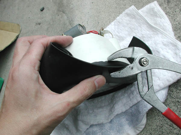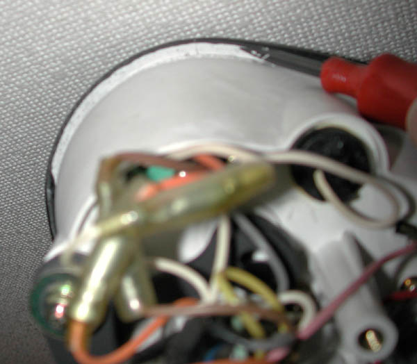 写真下は壊した針から「針」を取り出す為にさらに分解したものです。左下にあるのが「引きちぎった」とおぼしき「軸」です。先端をテーパー型に削って差し込みを試みた後が有ります。左右上方にある扇型の部品は針のバランスを取るウェイトです。