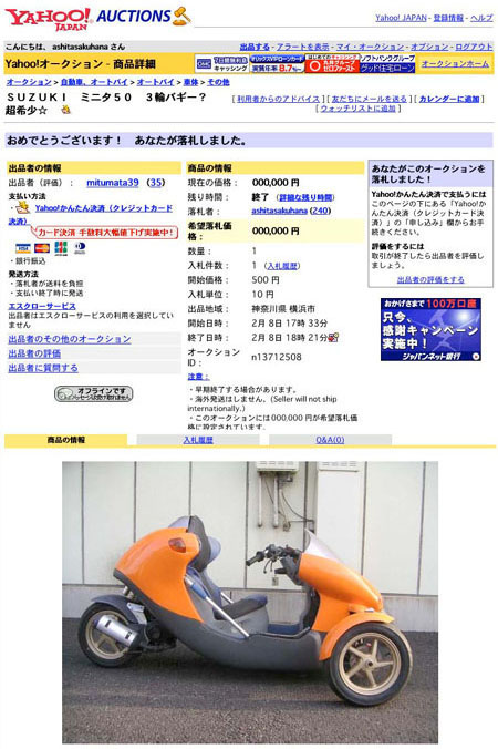 出品者は自動車オークションで入手したとの事で、出品票には「ミニタ50」と表記されていたそうです。それ以外の確かな情報がありません。車体番号も無く当然ながらメーカーも解らない得体の知れない車両です。