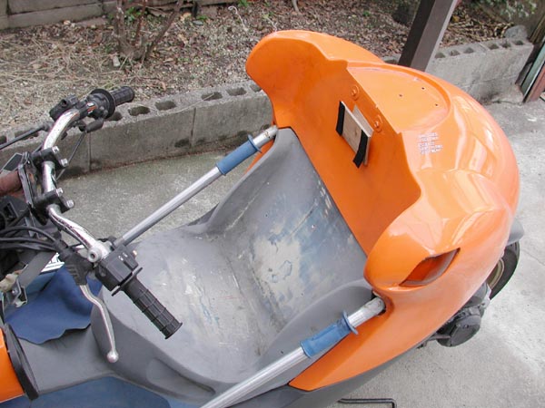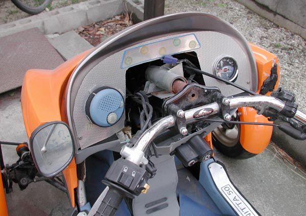 かろうじて解るのがエンジンがスズキだと言う事。スピードメーターにストマジのものが使われていることからおそらくエンジンもストマジのものでしょう。見た感じではミニカーのカテゴリーで登録できそうです。