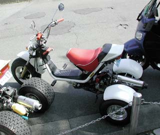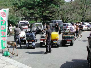 写真の車両はモトリペアさん所有(?)のロードフォックス改。Pekoさんが乗ってこられました。こちらはきなこパパさんのフォックスと違ってXのエンジンが積んでありました。この二台が追走する図も不思議な感じがしました〜〜〜