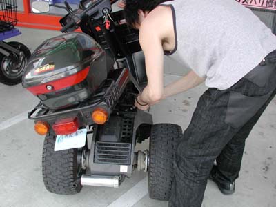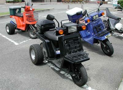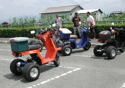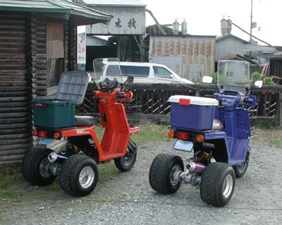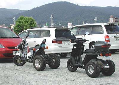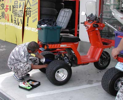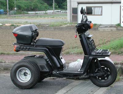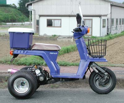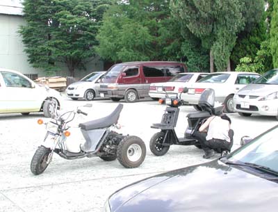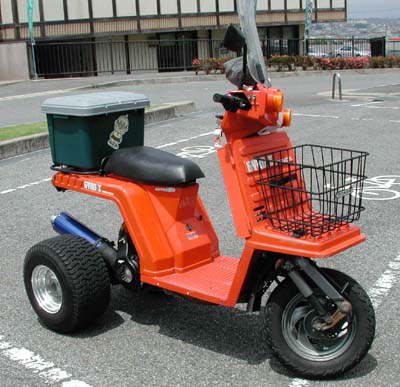 ヘッドライトの2灯が眼を引きます。でもフォッグランプなので遠くを照らさないとか・・・・・エンジン周辺はとても綺麗に手が入れられています。ウチのジャイロもやっぱしもう少し手を入れたいなぁ〜〜〜