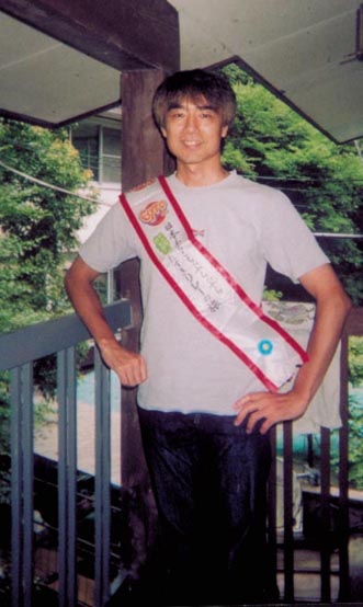 たすきの記念写真をベランダで撮りました(外はこの時まだ雨です)時間は午後3時近くのお開きタイムになりました